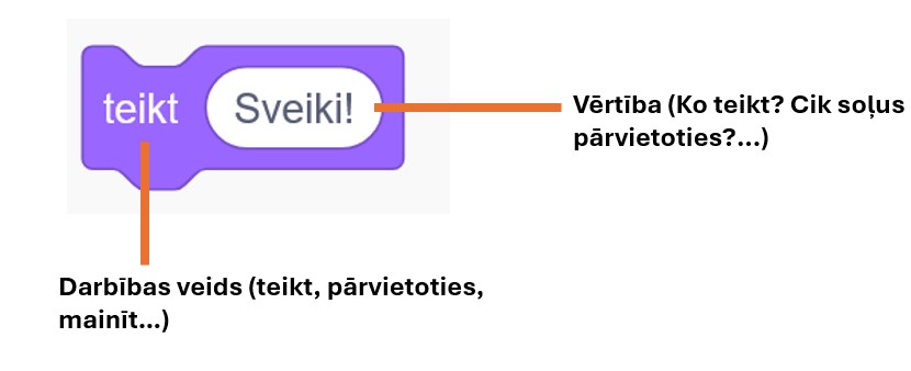Scratch izmantoja blokus, lai veiktu dažādas darbības: