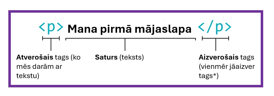 Veidojot mājaslapu mēs rakstam tagus (tag):