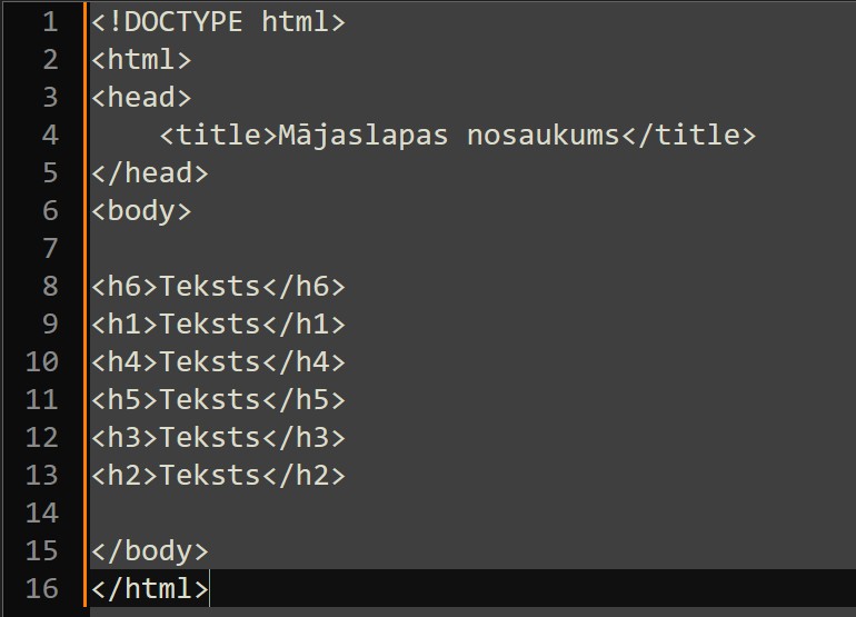 Jautājums. Ko dara h1 h2 ... h6 tagi?